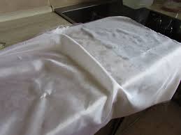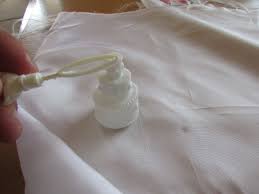 3) Vzali jsme lesklou saténovou látku, která je více citlivá na fleky než jiné materiály a vyzkoušeli jednotlivé varianty, slili jsme náplně do bublifukových lahviček a naopak jsme náplň z lahviček použili ve výrobníku.
